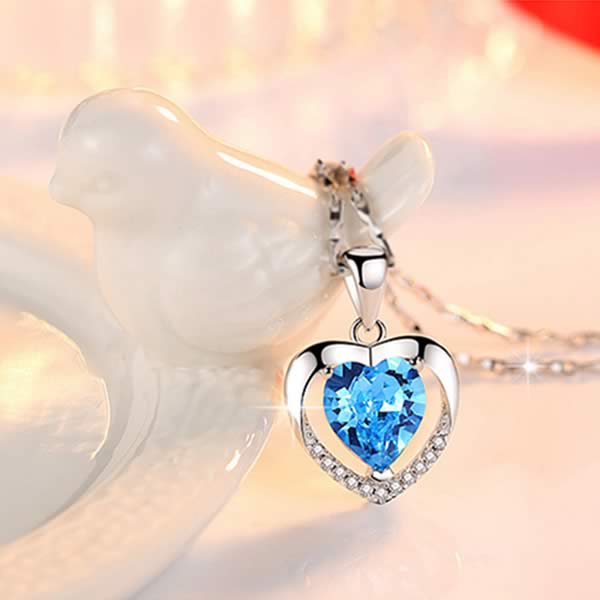 O pingente de coração azul deste colar é absolutamente hipnotizante. A sombra é rica e o brilho impecável.