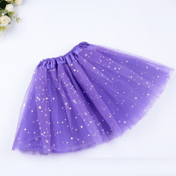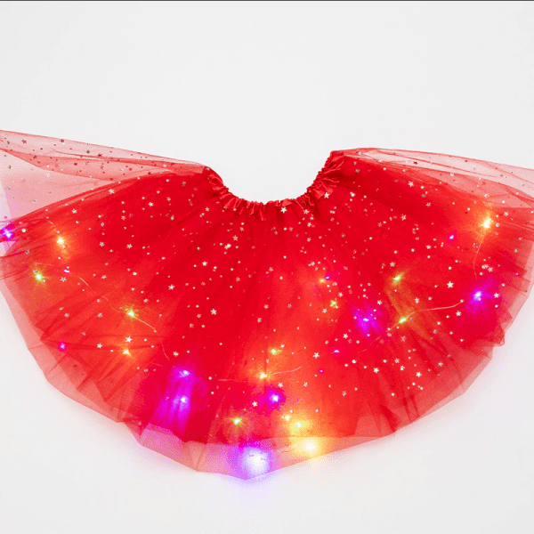 Decorações atraentes com lantejoulas de estrelas, luzes LED e material brilhante desta saia farão da sua filha uma verdadeira estrela. Ela brilhará onde quer que apareça.